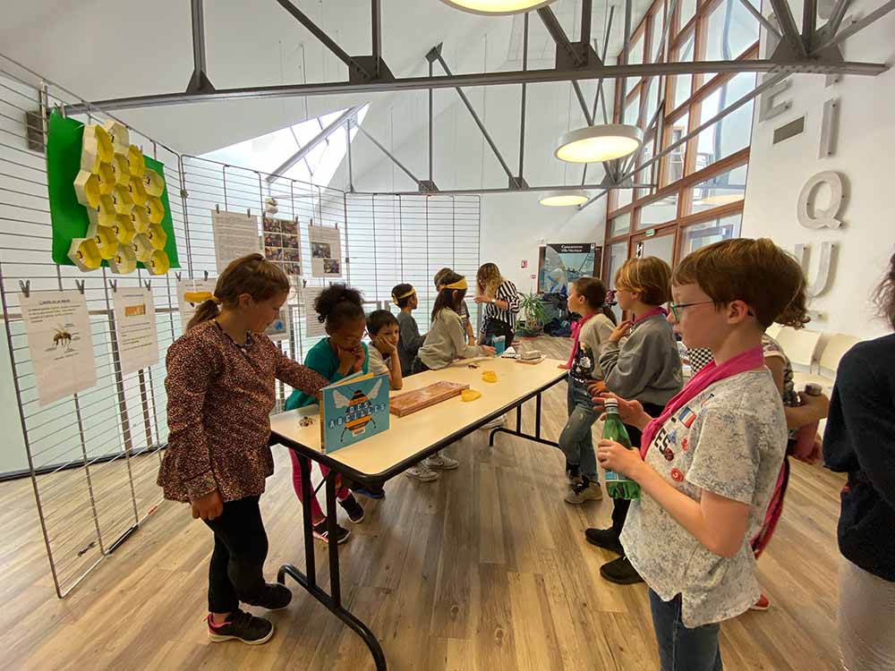 L’école d’Elliant nous invite au sein de la ruche et nous conte la vie des abeilles, leur fonctionnement complexe en colonie et quel est son rôle dans la Nature. Un insecte passionnant que l’on découvre par leurs créations évocatrices hautes en couleur détaillant les rôles dans la ruche, les stades de leur évolution, les parties de la ruche… Le tout observé en miroir avec la fourmilière. Petit polinisateur indispensable, on peut voir que les primaires d’Elliant en ont compris l’importance et savent le transmettre.
