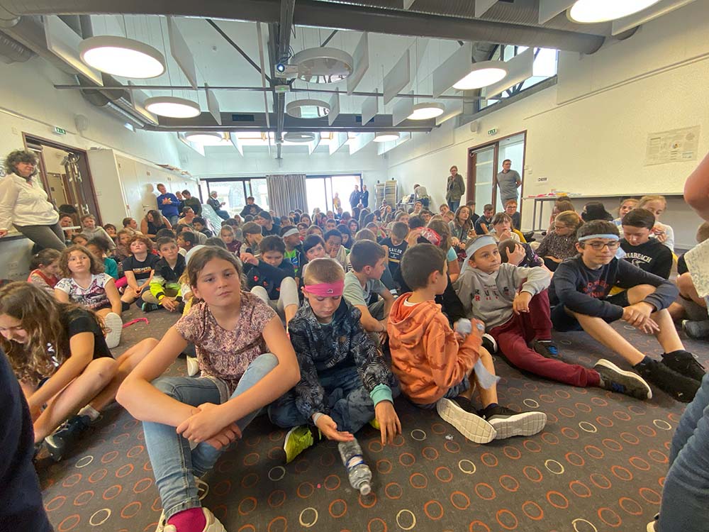 Quatre écoles et un collège se sont réunis pour présenter leurs travaux et profiter de ce bon moment collectif. En cette deuxième journée nous avons même créé une liaison visio avec l’Ecole de Tournefeuille près de Toulouse. Super atmosphère en ce vendredi.