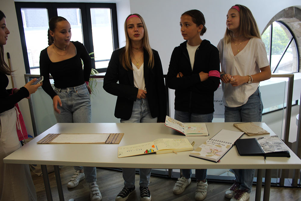 Chez les collégien.ne.s du collège de Brizeux de Quimper, on prenait le temps de s’évader au fil des carnets de voyage consacrés au hérisson et à la chauve-souris grand rhinolophe. Ces deux espèces, aujourd’hui fragilisées par la pollution, la fragmentation de leur habitat ou les activités humaines, furent dépeintes avec minutie et sensibilité.