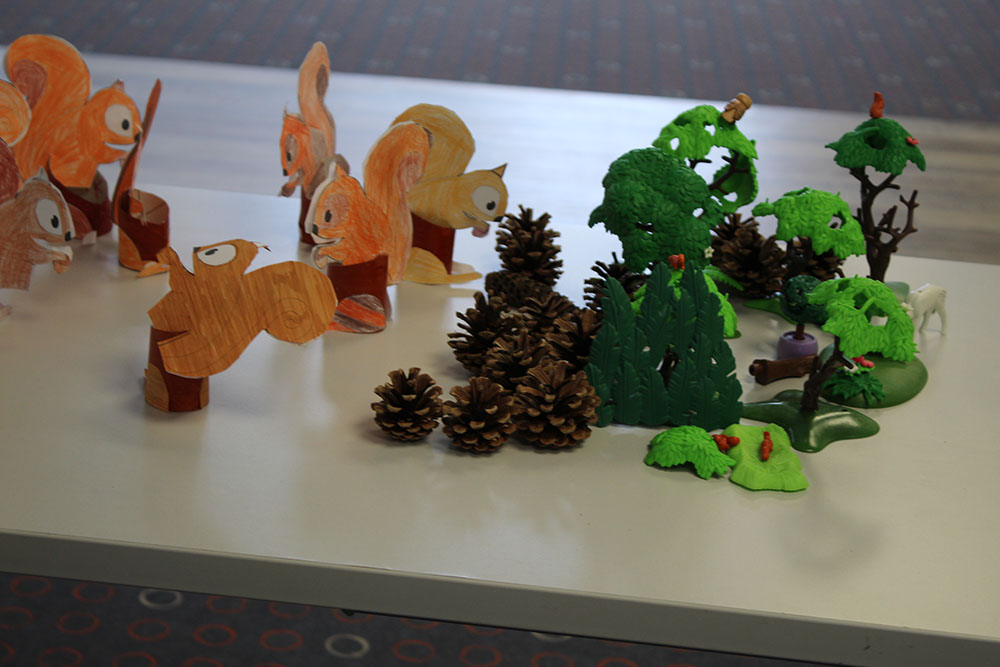 Dans l’école du Centre-Ville à Concarneau, une mise en scène immersive pour plonger l’auditoire dans la forêt concarnoise ou sud-américaine, et tenter d’illustrer la problématique de la fragmentation de l’habitat du paresseux d’un côté, de l’écureuil de l’autre. Un pari joliment réussi à la vue des réactions du public.