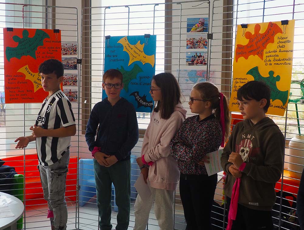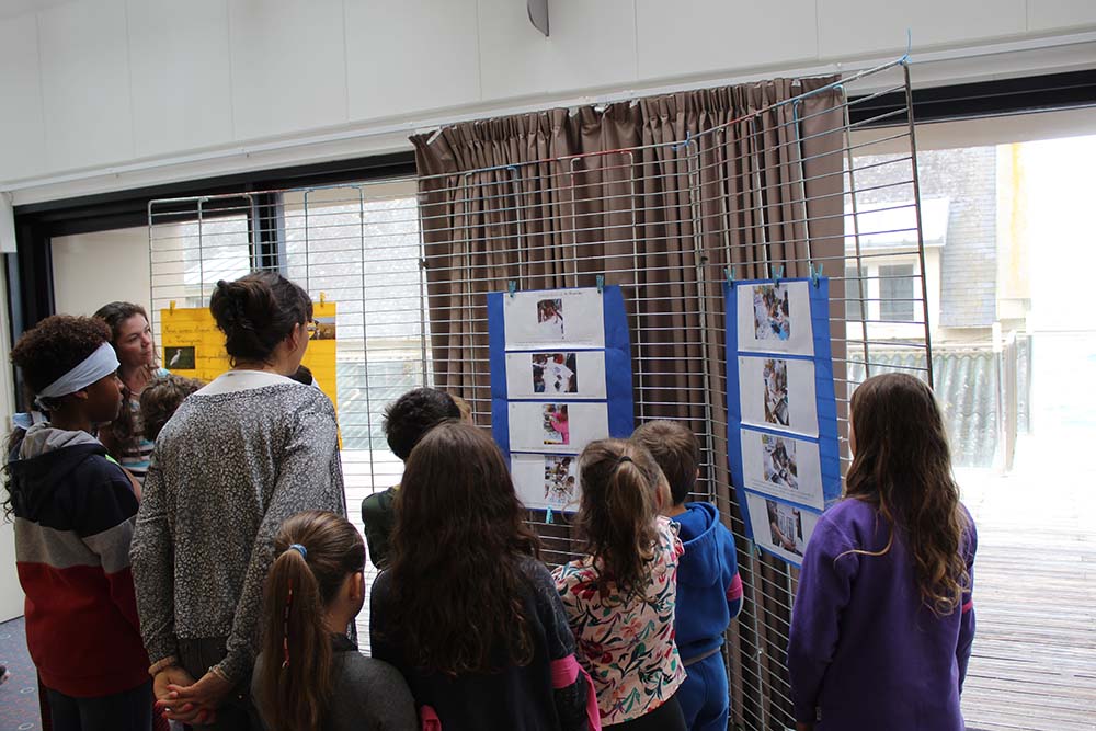 Pour les primaires de l’école Françoise Dolto à Séné, ce fut l’occasion de présenter le pré-salé. Cet écosystème, qu’ils étudient mensuellement dans le cadre de leur AME (Aire Marine Éducative), fut exposé à travers une vidéo détaillant son fonctionnement et les règles propres aux sorties, ainsi que des dessins illustrant les tadornes de Belon ou encore les échassiers comme la spatule.