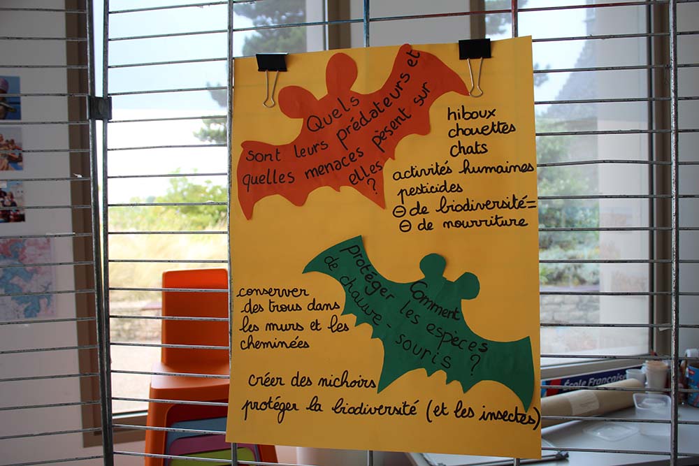 L’école Marc Bourhis à Tregunc avance au radar ! Enfin, à l’écho, comme la chauve-souris Grand Rhinolophe, une des plus grandes d’Europe. Une description minutieuse du chiroptère mise en image par les élèves. Une jolie manière de nous parler de ses capacités si particulières, des endroits où la mystérieuse se cache et une façon d’aborder les obstacles (réseau routier, pollution, etc.) qui aujourd’hui la place dans une situation délicate.