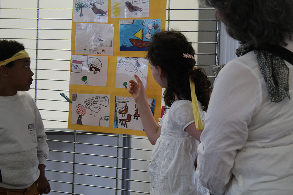 Après avoir découvert le voyage de Darwin et sa Théorie de l’Evolution durant des ateliers, avoir étudié une espèce avec un naturaliste sur le terrain et l’avoir comparée en visioconférence avec Victor, c’était maintenant le moment de présenter sa création faite en classe devant les autres élèves.