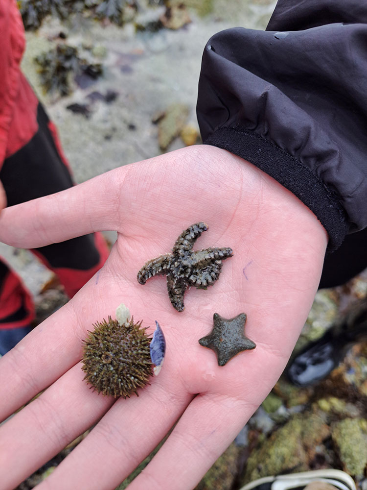 Cette particularité permet aux femelles de porter leurs œufs quelque temps avant de les relâcher dans l’eau pour qu’ils éclosent. Les élèves trouvent aussi de nombreux autres organismes marins. On observe des étoiles de mer communes, des ophiures, des blennies ou encore une limace de mer appelée éolis à papille.