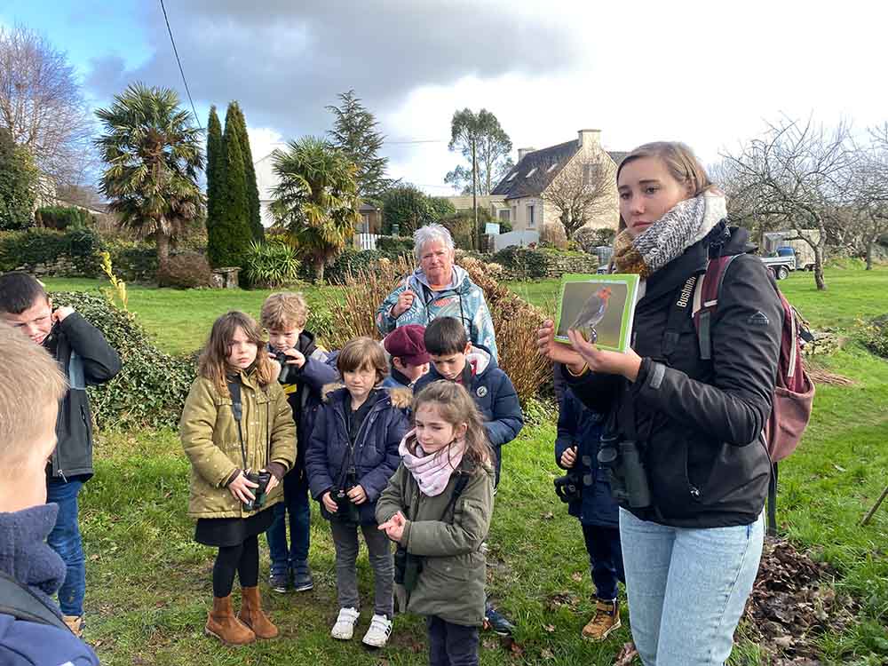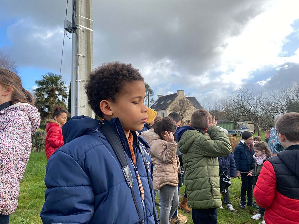 Les CP, CE1 et CE2 de l’école de Cadol se réunissent pour partir à la découverte du Héron garde-bœufs. Cette espèce, quelque peu opportuniste, a su, au fil du temps, profiter de l’adoucissement des températures pour migrer toujours plus au nord. C’est pourquoi on la trouve aujourd’hui en Bretagne, et nous voilà prêts à l’observer.