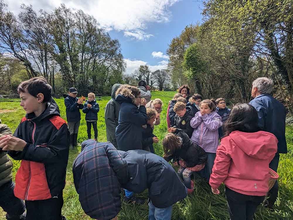 Ce mardi 16 avril, une sortie atypique m’attend à Saint-Yvi ! Je rejoins la classe de CE2-CM1-CM2 accompagné de Yannick, représentant d’Esprit’Nature et bénévole de Bretagne Vivante, grand connaisseur de la flore bretonne.