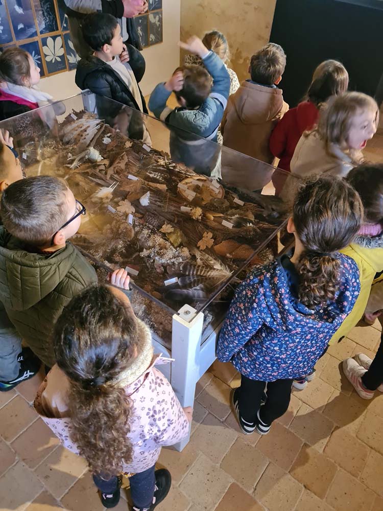 À l’aide d’images prises par des pièges photos et vidéos, Maël nous présente les autres habitants du site de l’abbaye : chevreuils, loutres, grives, renards, etc. Nous pouvons ausi observer des crânes, des plumes, des mues, récoltés par notre guide depuis plusieurs mois.