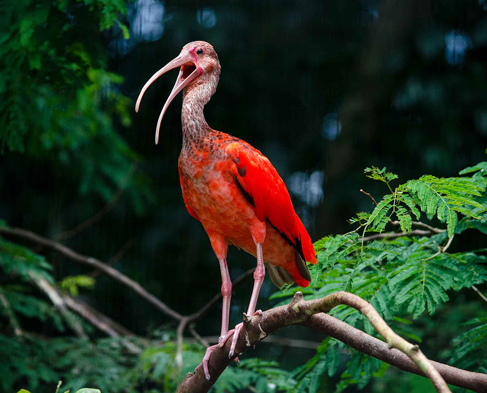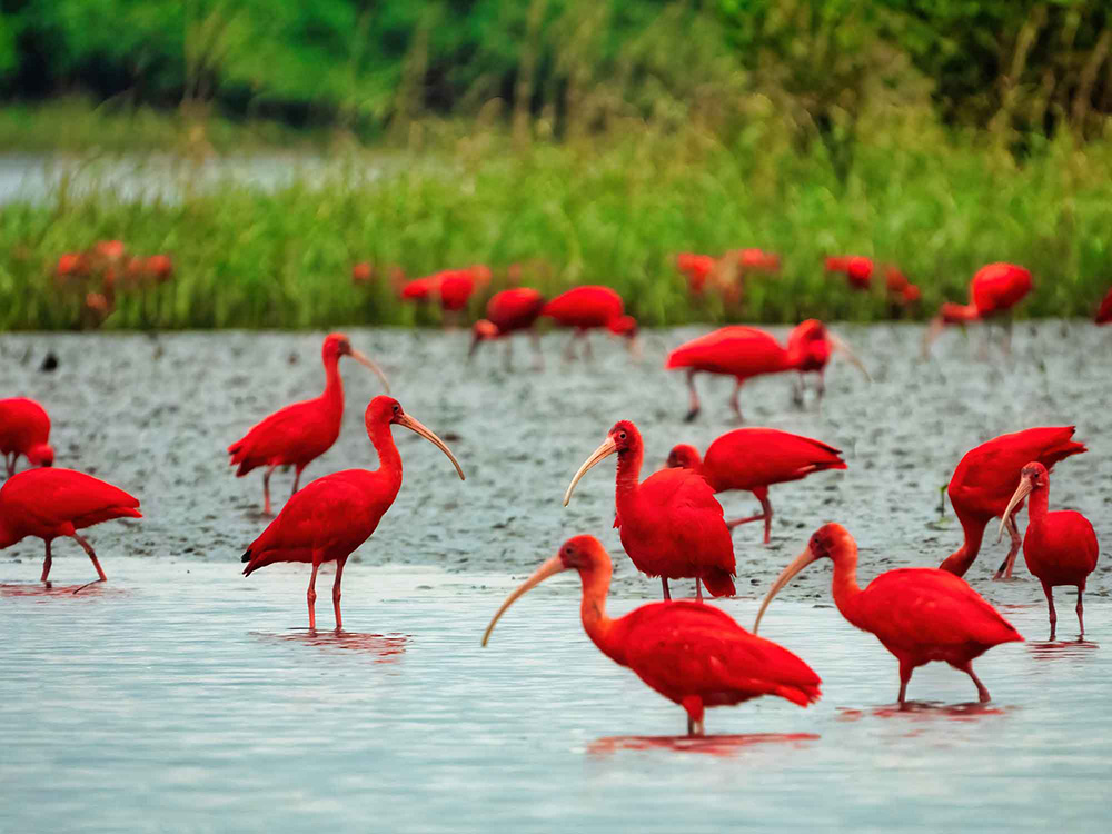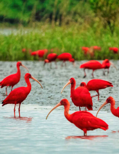 Avec son plumage rouge éclatant, dû aux pigments des crabes dont il se nourrit, l’Ibis rouge est l’un des oiseaux les plus spectaculaires d’Amérique tropicale. Il vit en colonies dans les zones humides comme les mangroves et les lagunes, des milieux essentiels mais fragiles.