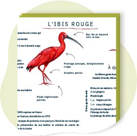 Comparez l’ibis rouge au Héron garde-boeufs ou à d’autres échassiers qui vivent en milieu humide (Courlis, Héron cendré, Aigrette garzette…) ou encore la Loutre !