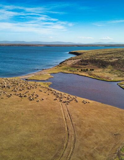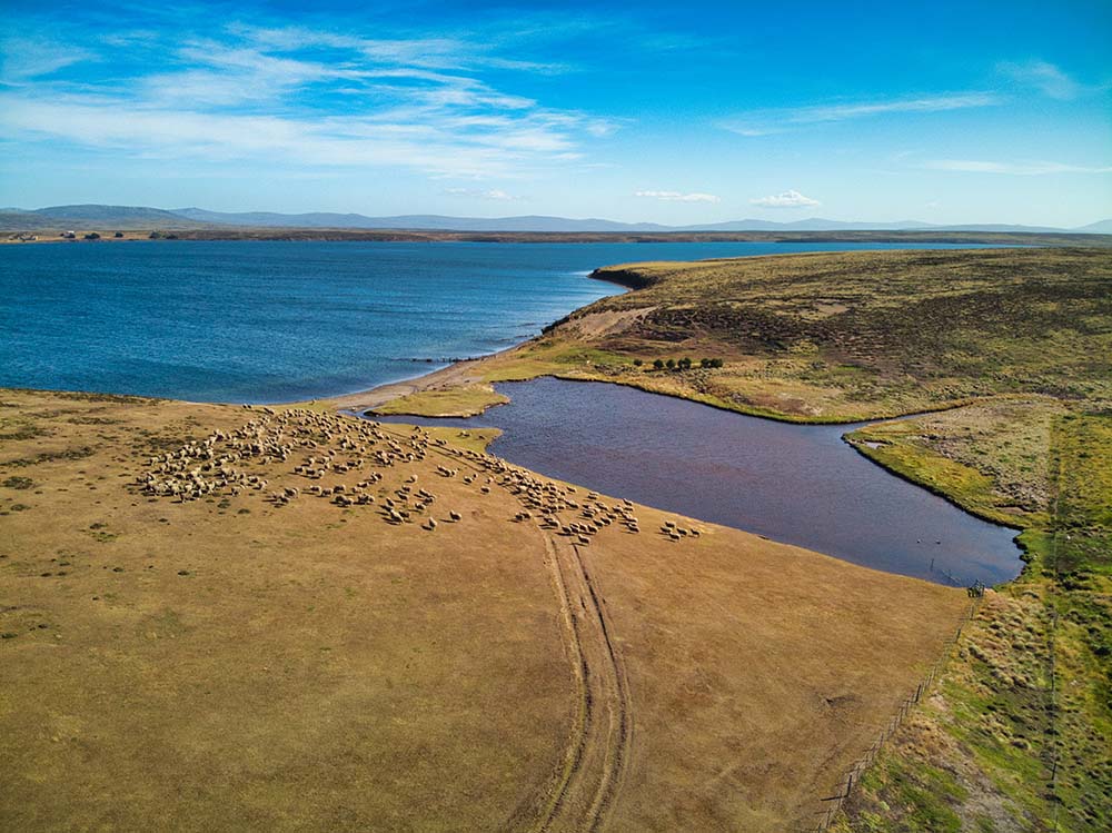 Aujourd’hui, les moutons occupent presque toute la surface de l’archipel, répartis sur une vingtaine de fermes immenses de plusieurs dizaines de milliers d’hectares. Ils vivent en semi-liberté, pâturant sur les terres pendant la majeure partie de l’année avant d’être tondus annuellement.