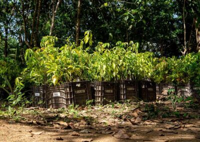 Dans certaines parcelles, les Pataxo ajoutent une dimension agricole durable. Le cacao, les bananiers ou le manioc poussent sous la jeune canopée. Cela crée une économie fondée sur la biodiversité plutôt que sur sa destruction. Ici, replanter n’est pas une nostalgie du passé, c’est une manière d’inventer un avenir plus juste et plus fertile.